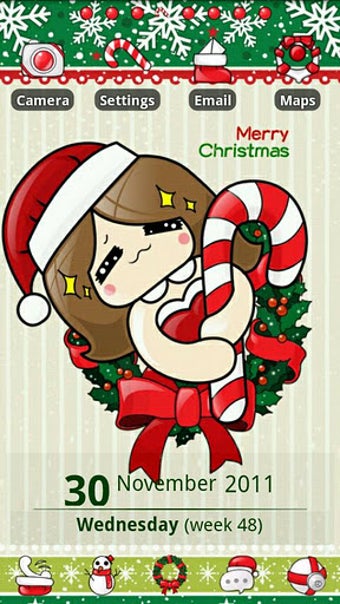 O Happyxmas Theme GO Launcher EX vai mudar completamente o visual do seu Android. Uma garotinha vestida de Mamãe Noel passará a habitar seu fundo de tela, e os ícones se transformarão em bonecos de neve, guirlandas, sinos, bolas para árvore de Natal... Tudo isso no formato de graciosas miniaturas.